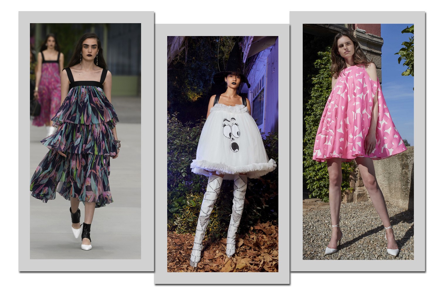 Diversas grifes, como Carolina Herrera, incluíram a peça a suas coleções resort 2020. O modelo é bem simples: um vestido justo no busto, mas que cria volume em seu comprimento, o que podemos chamar de trapézio. Veja como as marcas apostaram nas camisolas fashionistas: