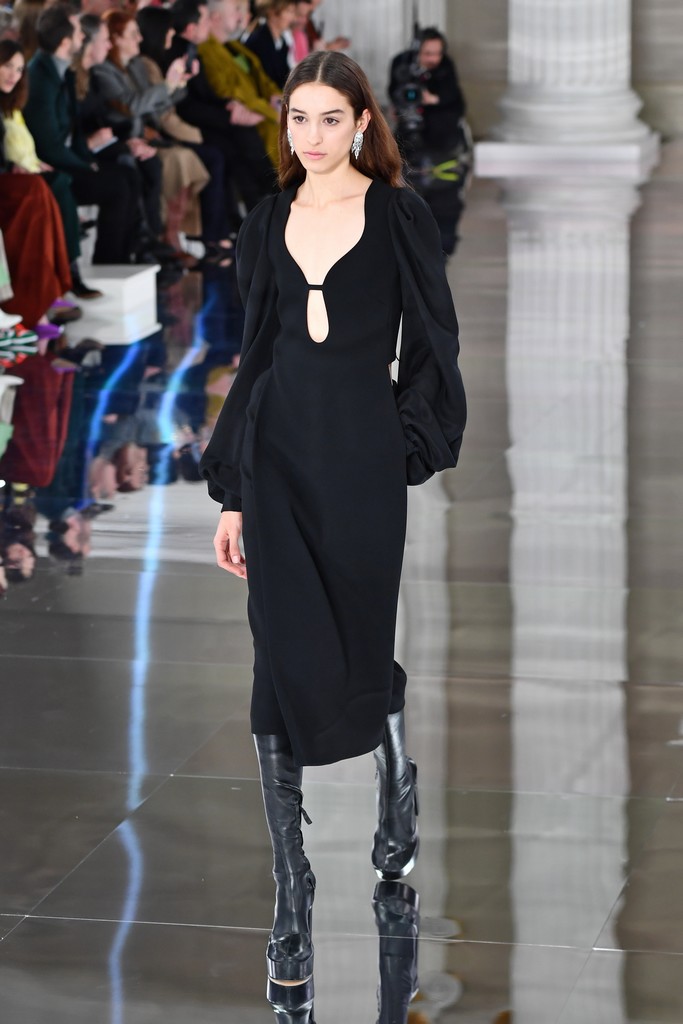 Victoria Beckham apresentou uma série de vestidos pretos nada básicos para o inverno 2020.
