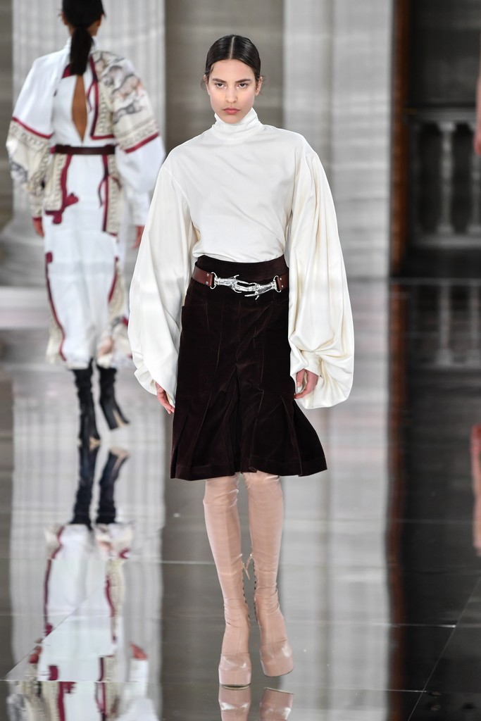 O resultado foi um desfile que manteve a elegância característica da label, mas brincou com as silhuetas. Proporções menores, volumes que nascem da fluidez, saias levemente arredondadas e recortes e decotes arredondados foram a forma encontrada por Victoria para se rebeliar sem perder sua essência.