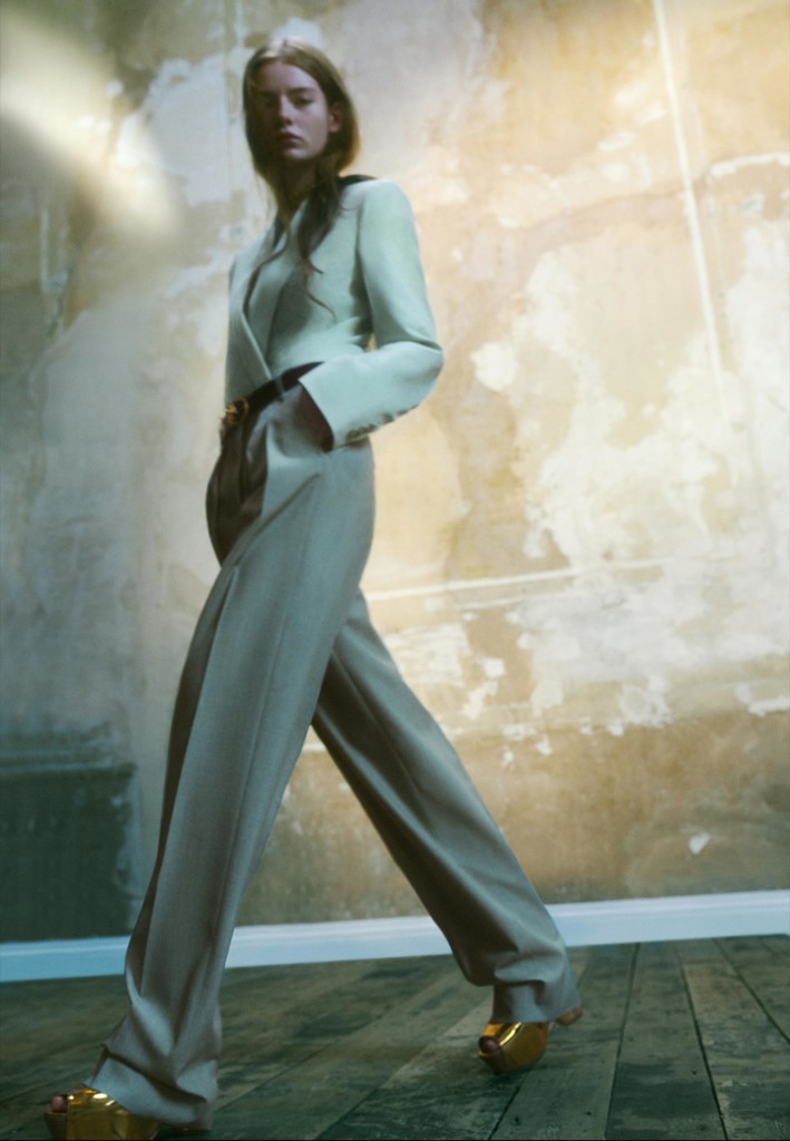 “A camisa do seu parceiro jogada por cima do maiô ou do slipdress, a jaqueta shacked xadrez jogada por cima da calça da alfaiataria… gosto da ideia de um casal dividindo seu guarda-roupa”, afirma Victoria Beckham.
