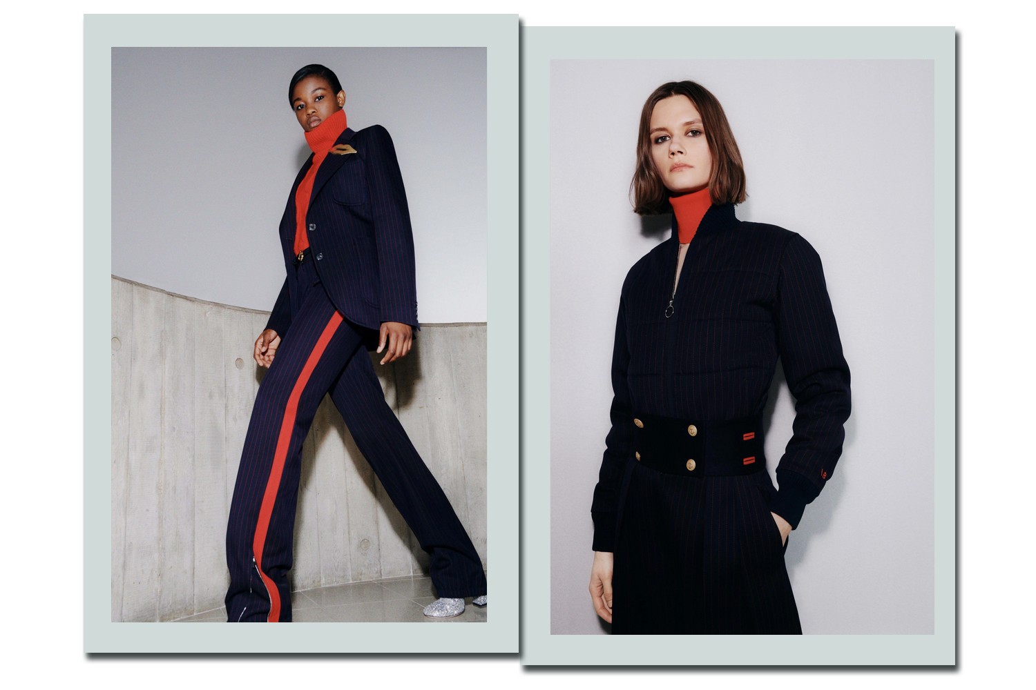 Um dos principais truques de styling usados na coleção é a sobreposição usando golas altas – tanto em blusas, quanto um acessório que cobre o pescoço.