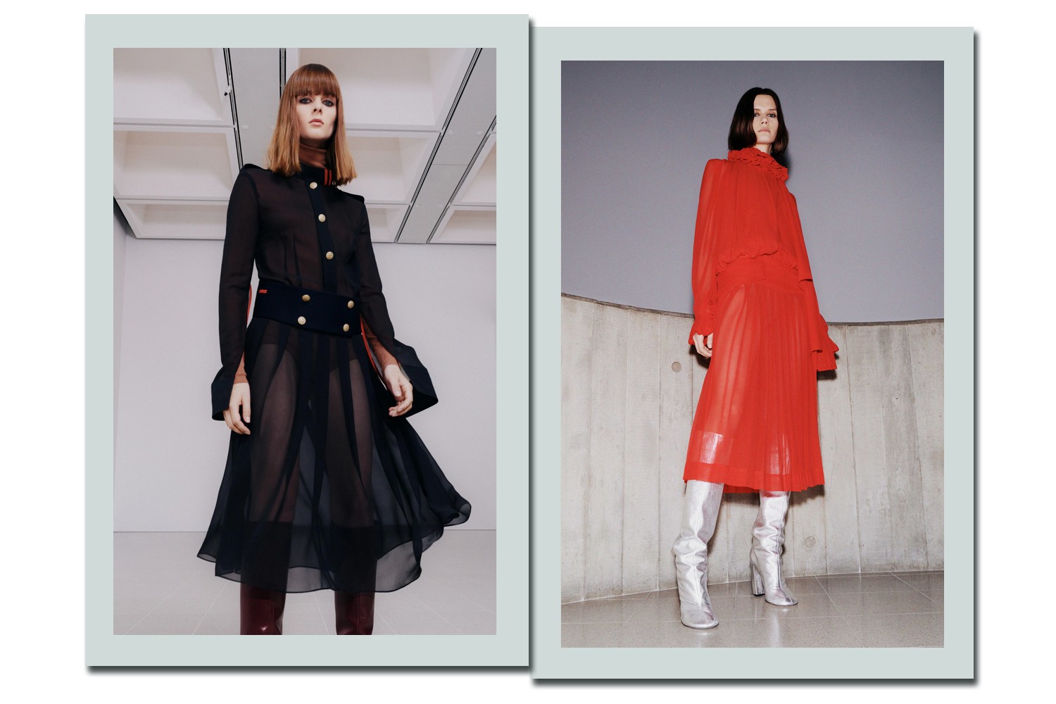 Vestidos transparentes acrescentarem leveza e fluidez ao inverno 2021 da Victoria Beckham.