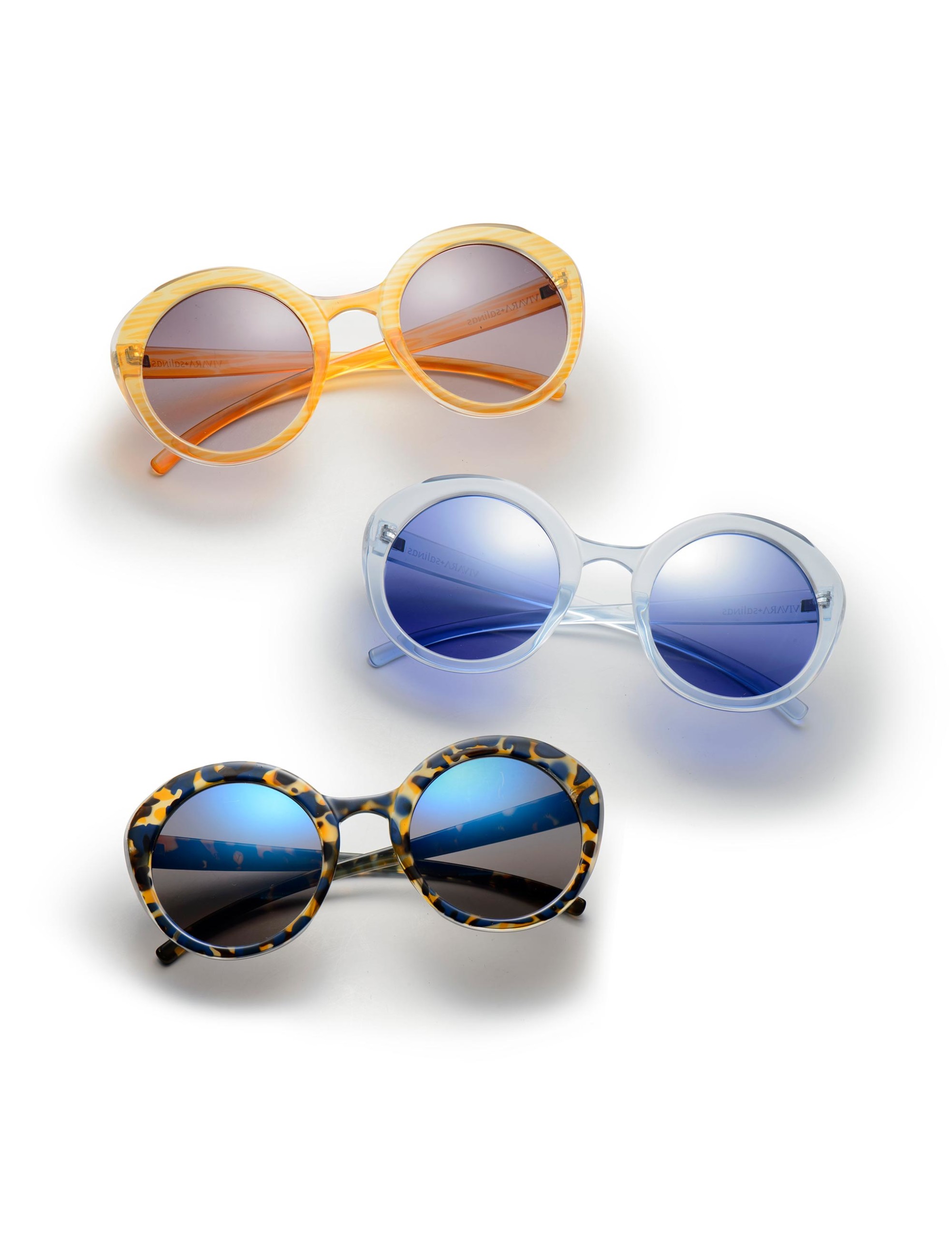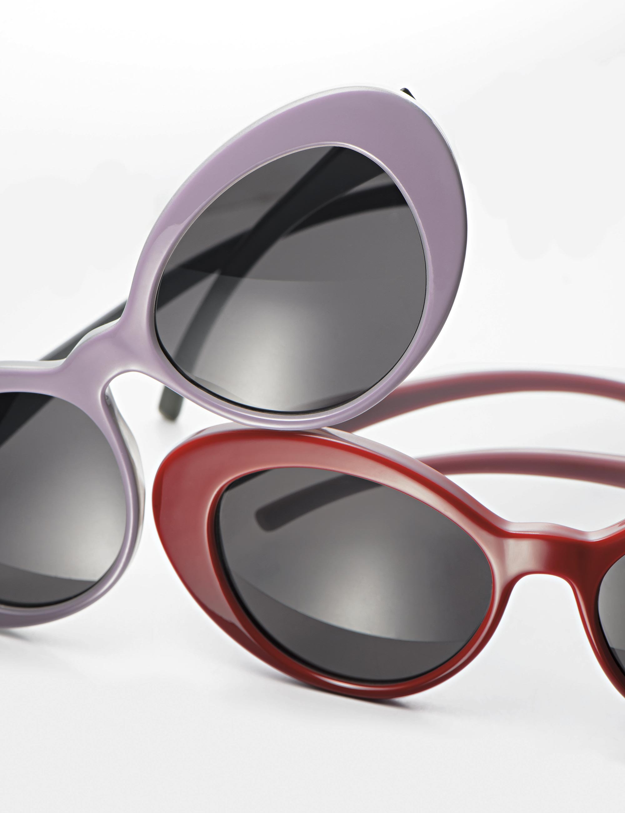 Os óculos feitos de acetato e aço inoxidável variam entre desenhos clássicos a modernos, que incluem shapes quadrados, redondos, ovais e levemente gatinho. A transparência, tendência forte para a próxima estação, está presente em algumas peças. Outra aposta é na lente espelhada, que traz um ar descolado para a coleção.