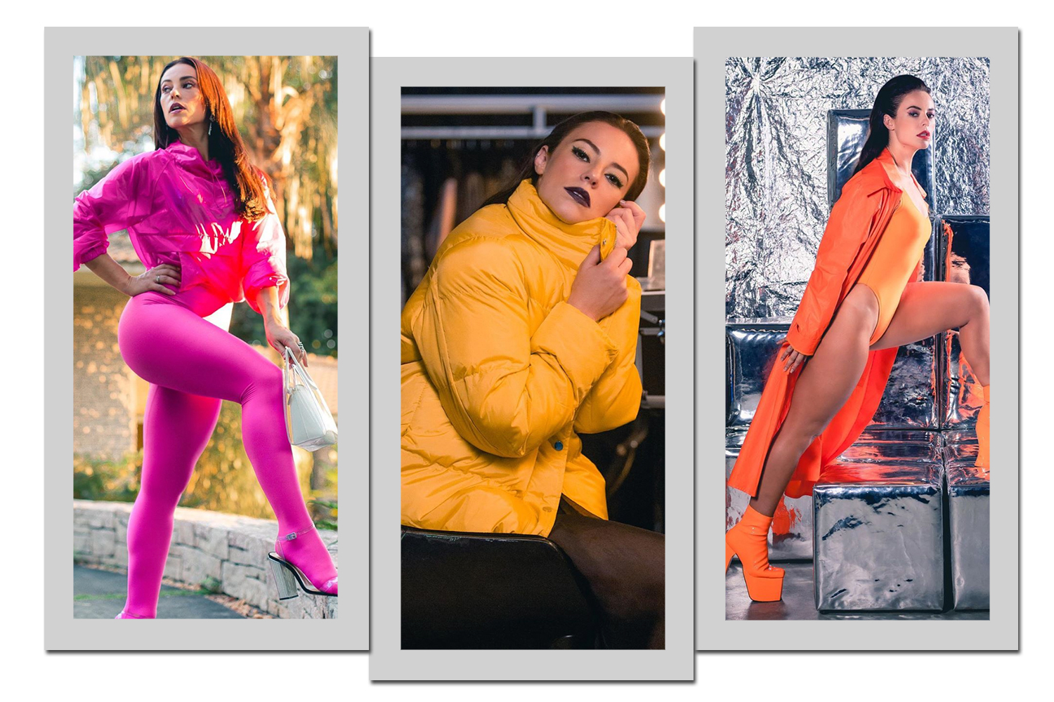 O neon também faz parte do guarda-roupa da influencer. Na Pink Fever e na Yellow Fever, Vivi se mostra up to date conforme as tendências atuais. E o laranja neon faz jus aos looks de personalidades como Kim Kardashian ou Kylie Jenner.