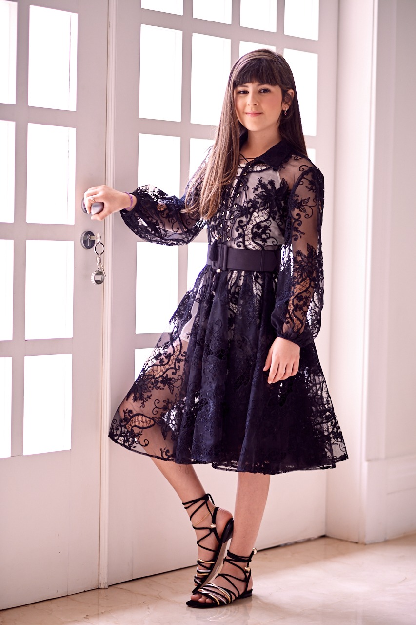 Para a coleção de estreia da Voir, que significa ver em francês, a diretora criativa apostou em vestidos de tule bordados à mão com fios de seda e flores, peças com rendas chantilly e guipir, poncho de seda com estampa psicodélica, jeans com aplicações de metal e coletes de couro. Segundo ela, as peças com elementos únicos e atemporais resgatam o brilho da décennie d’or para os dias atuais.