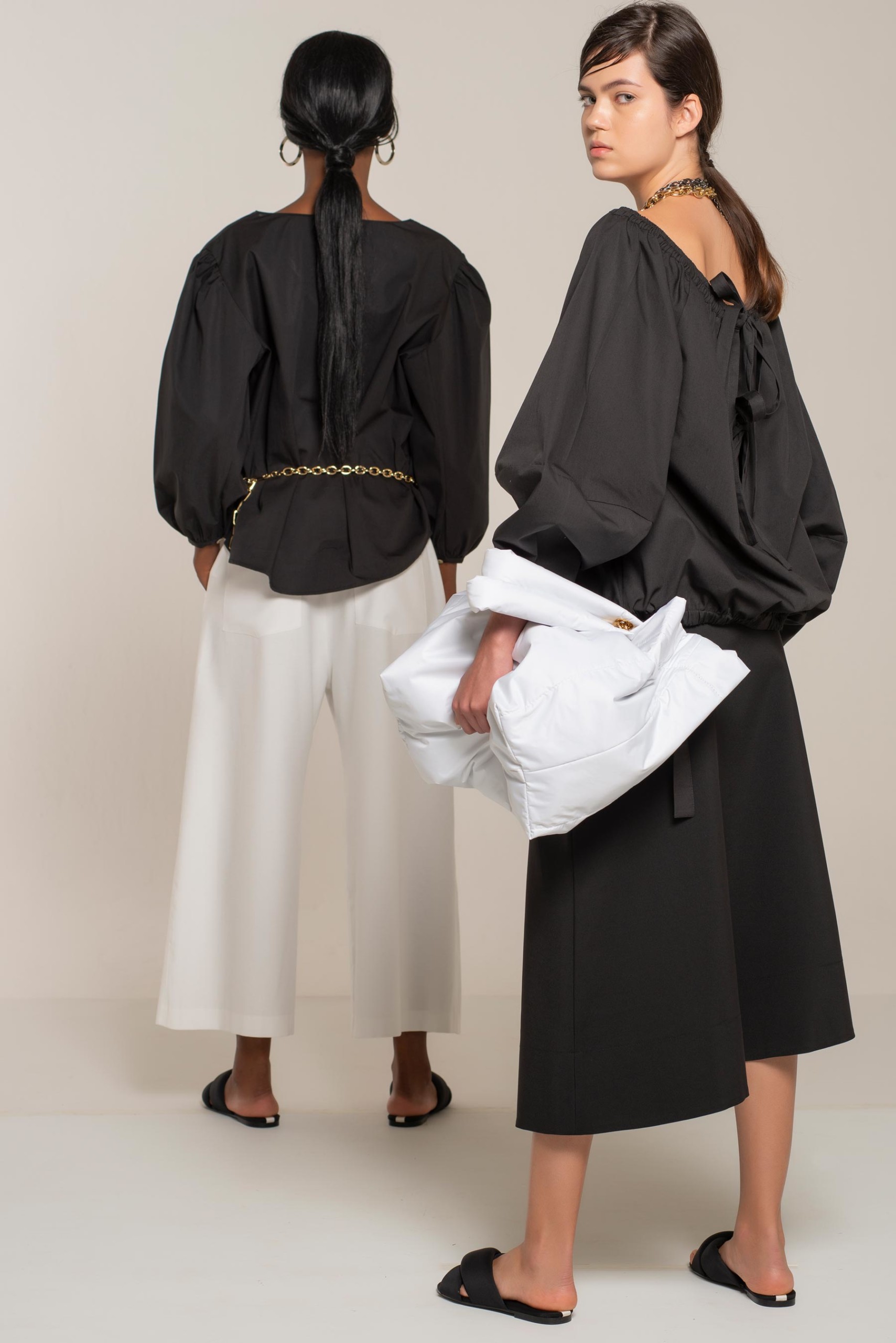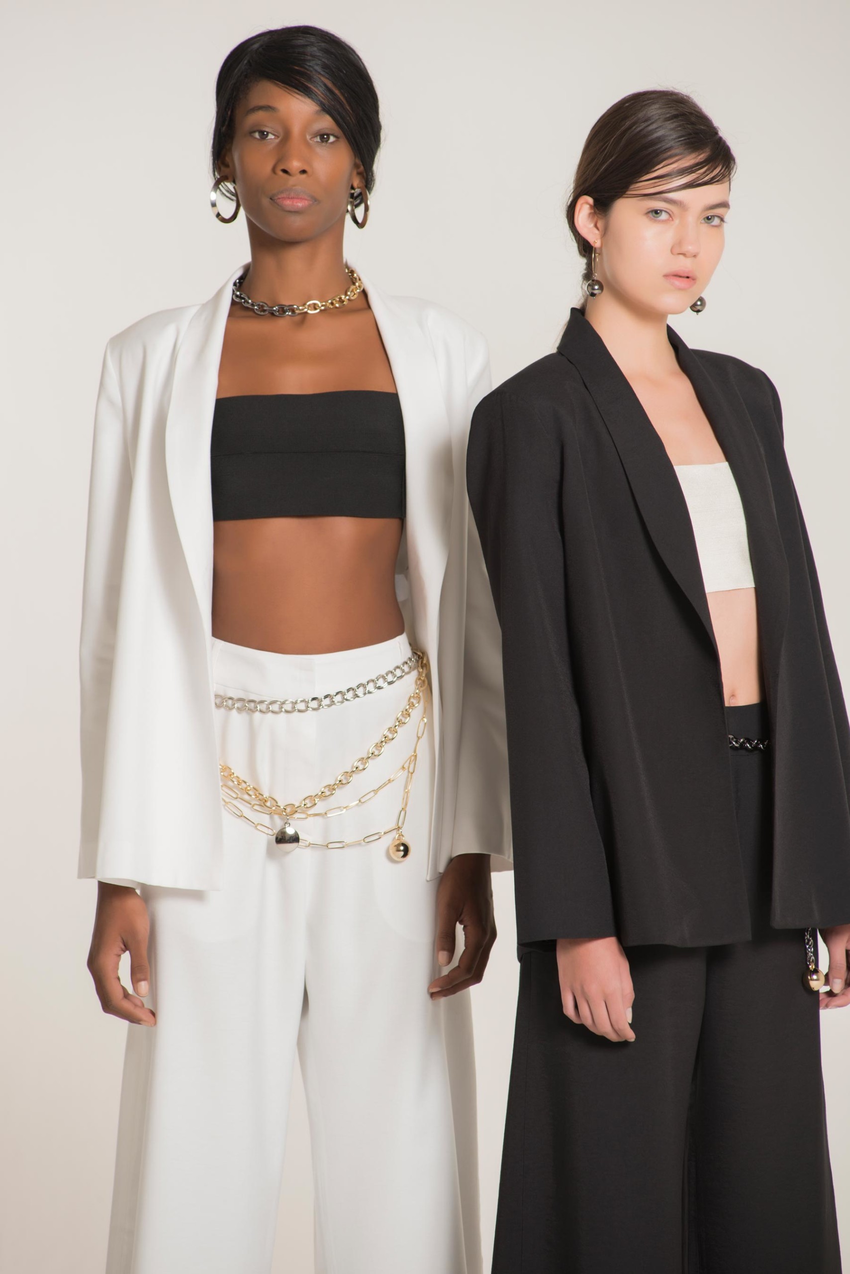 Pensando nesta mulher, as peças não seguem tendências, podem ser combinadas de várias maneiras e facilmente incorporadas ao guarda-roupa. Sem falar na qualidade dos tecidos e nas modelagens mais amplas que atendem a uma variedade de tamanhos. Preto e branco predominam com detalhes em amarelo, trazendo uma mensagem de otimismo e alegria.