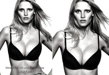 Lara Stone mostra o novo sutiã da Calvin Klein