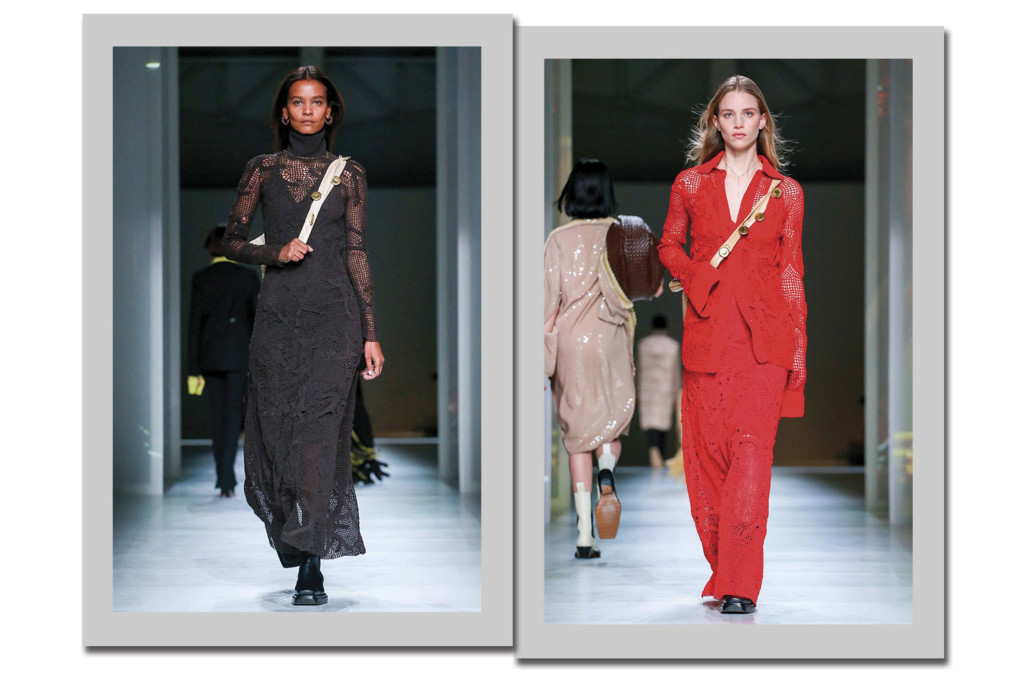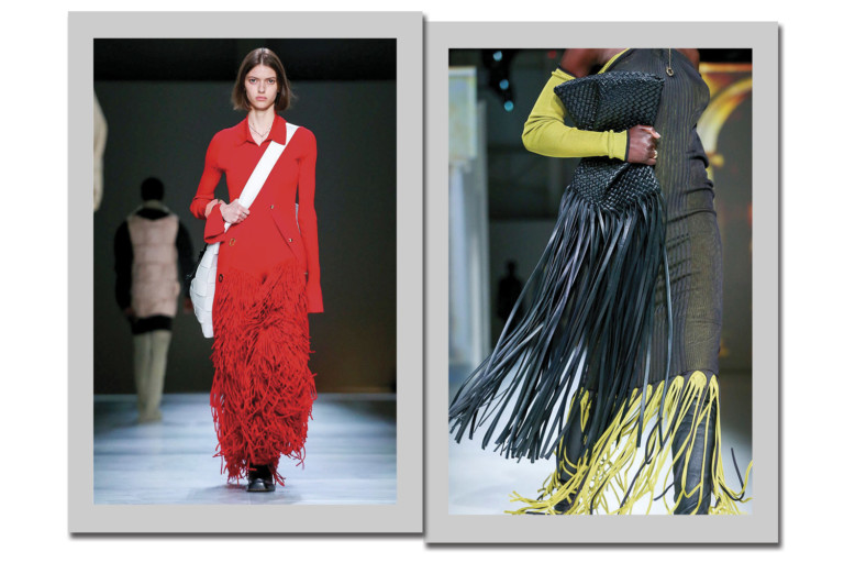 As franjas dominaram boa parte do desfile da Bottega Veneta, trazendo bastante movimento para a coleção.
