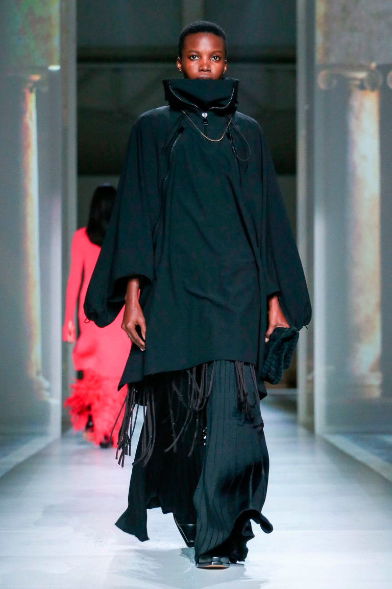 Por traz da silhueta longilínea, um twist genderless. Vestidos-coluna, apesar do brilho, seguem a mesma rigidez. No entanto, os drapeados de paetê já nascem desejo. Detalhes em neon, ou looks inteiros, acendem a passarela e barras franjadas partout provocaram movimento e estardalhaço.