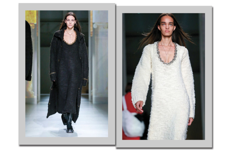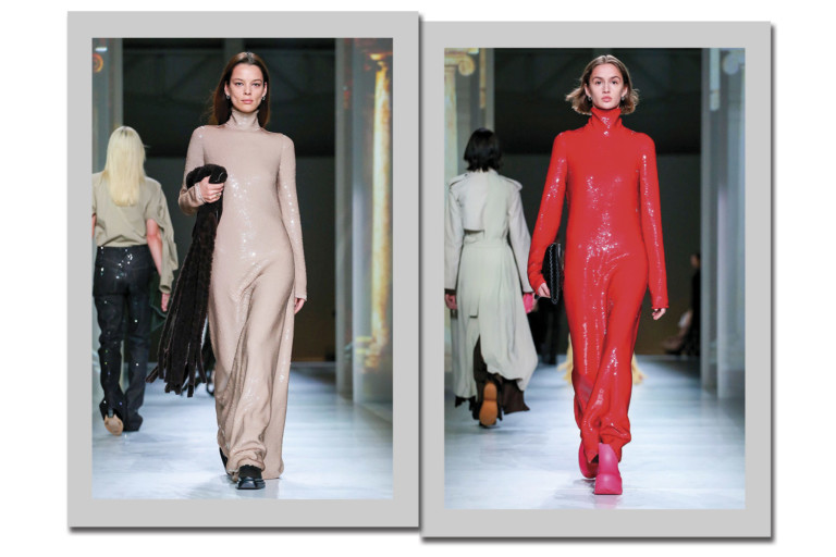Vestidos-coluna, apesar do brilho, seguem a rigidez que faz parte do DNA de Daniel Lee.