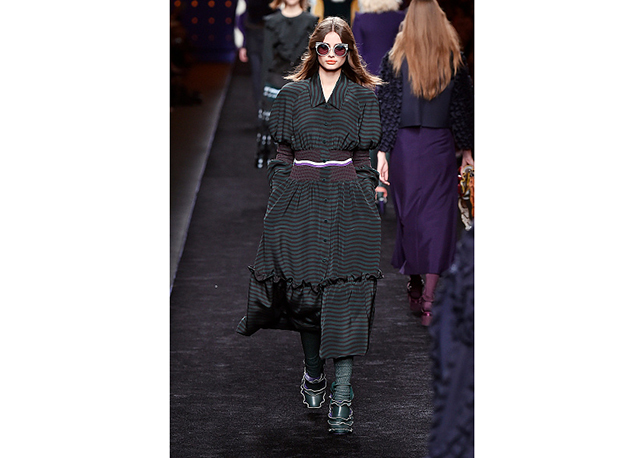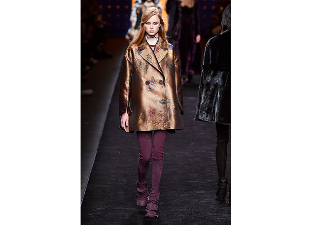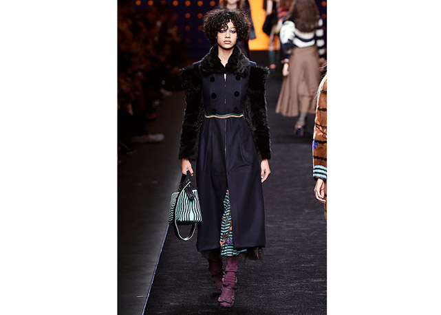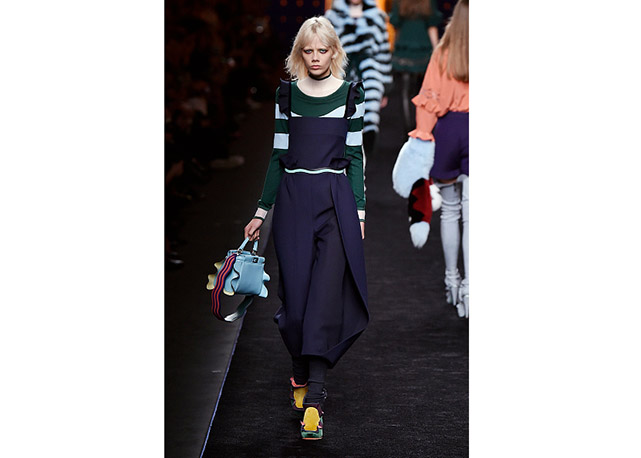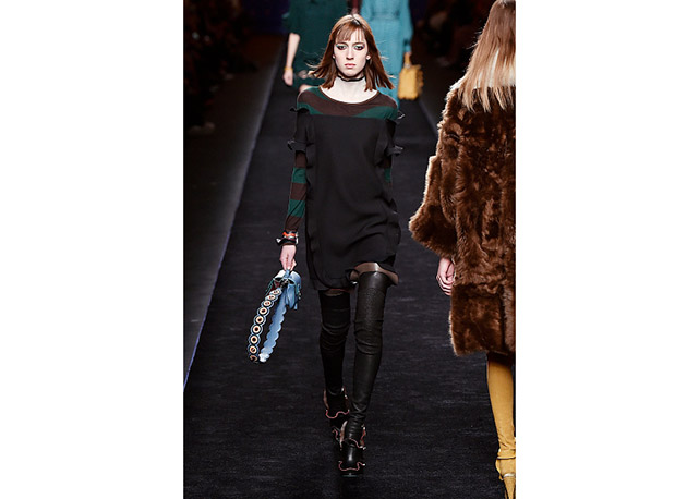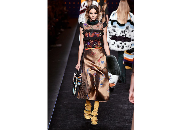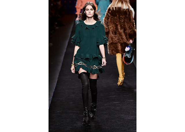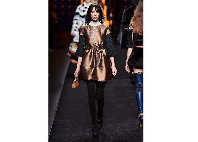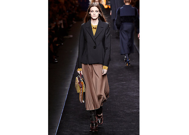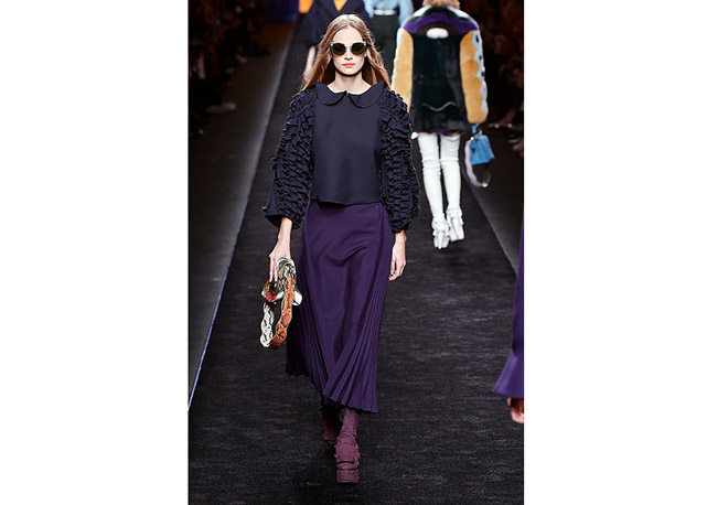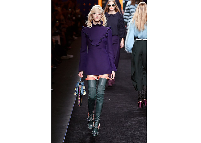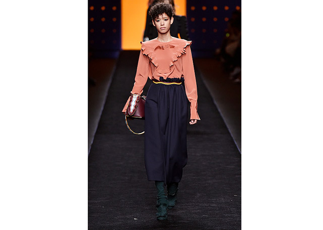 Via de regra, roupas sãos protagonistas e acessórios, coadjuvantes. Exceto quando se é uma marca responsável pelas bolsas mais desejadas da atualidade (e também aquela que lançou o fenômeno da it bag). Foi assim na manhã desta quinta-feira (25.02), quando a Fendi colocou uma alfaiataria superfeminina como complemento às bolsas de patchwork ondulado; saias e vestidos com babados junto a cuissardes decoradas com o mesmo artifício; e vestidos metalizados com florais orientais ao lado de maxibolsas forradas de pele.