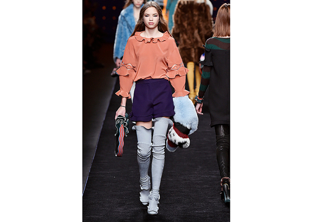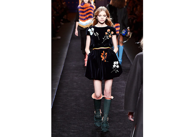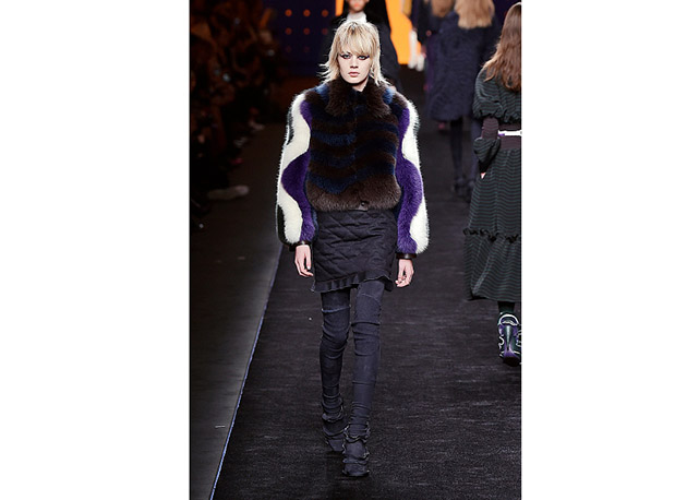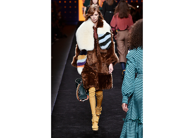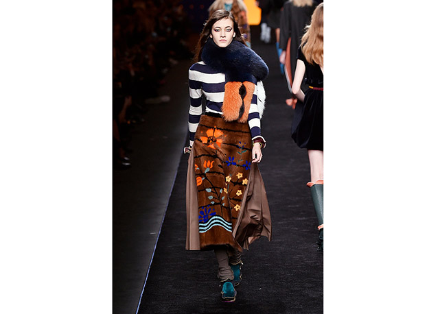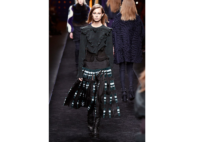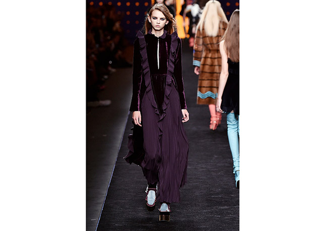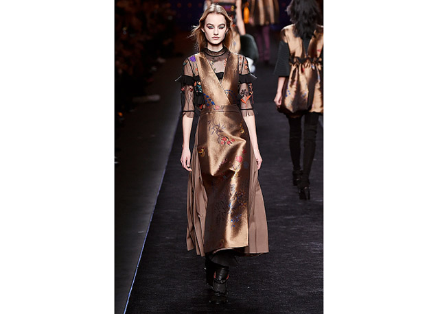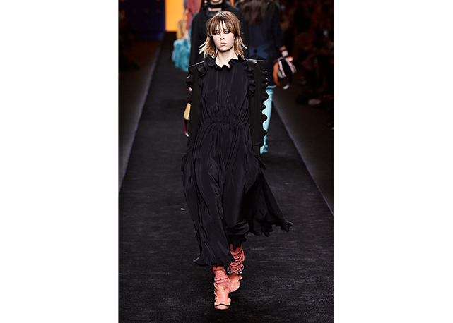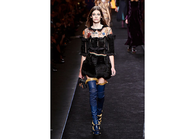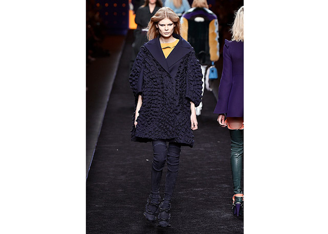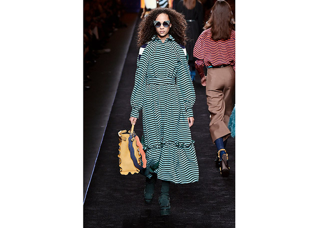 Via de regra, roupas sãos protagonistas e acessórios, coadjuvantes. Exceto quando se é uma marca responsável pelas bolsas mais desejadas da atualidade (e também aquela que lançou o fenômeno da it bag). Foi assim na manhã desta quinta-feira (25.02), quando a Fendi colocou uma alfaiataria superfeminina como complemento às bolsas de patchwork ondulado; saias e vestidos com babados junto a cuissardes decoradas com o mesmo artifício; e vestidos metalizados com florais orientais ao lado de maxibolsas forradas de pele.